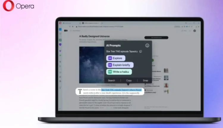 پس‌ از روشن‌کردن گزینه‌ی AI Prompt در مرورگر اوپرا، دکمه‌هایی برای استفاده از قابلیت‌های چت‌بات هوش مصنوعی در دسترس کاربر خواهد بود. توجه کنید برای استفاده از این ویژگی‌ها باید وارد حساب کاربری اوپرا خود شوید. علاوه‌براین، می‌توانید چت‌بات هوش مصنوعی را با استفاده از اعلان‌های متنی جدید راه‌اندازی کنید؛ قابلیتی که هنگام انتخاب متن‌های موجود در وب‌سایت‌ها نمایش داده می‌شود.