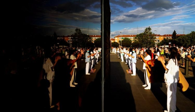 تصویرعکس روز گردهمایی اعتراضی کادر درمان بیمارستانی در شهر مادرید اسپانیا نسبت به کمبود نیرو بوسیله CJN در مه 30, 2020 32 32 به اشتراک گذاری FacebookTwitterGoogle+ReddItWhatsAppPinterestپست الکترونیک
